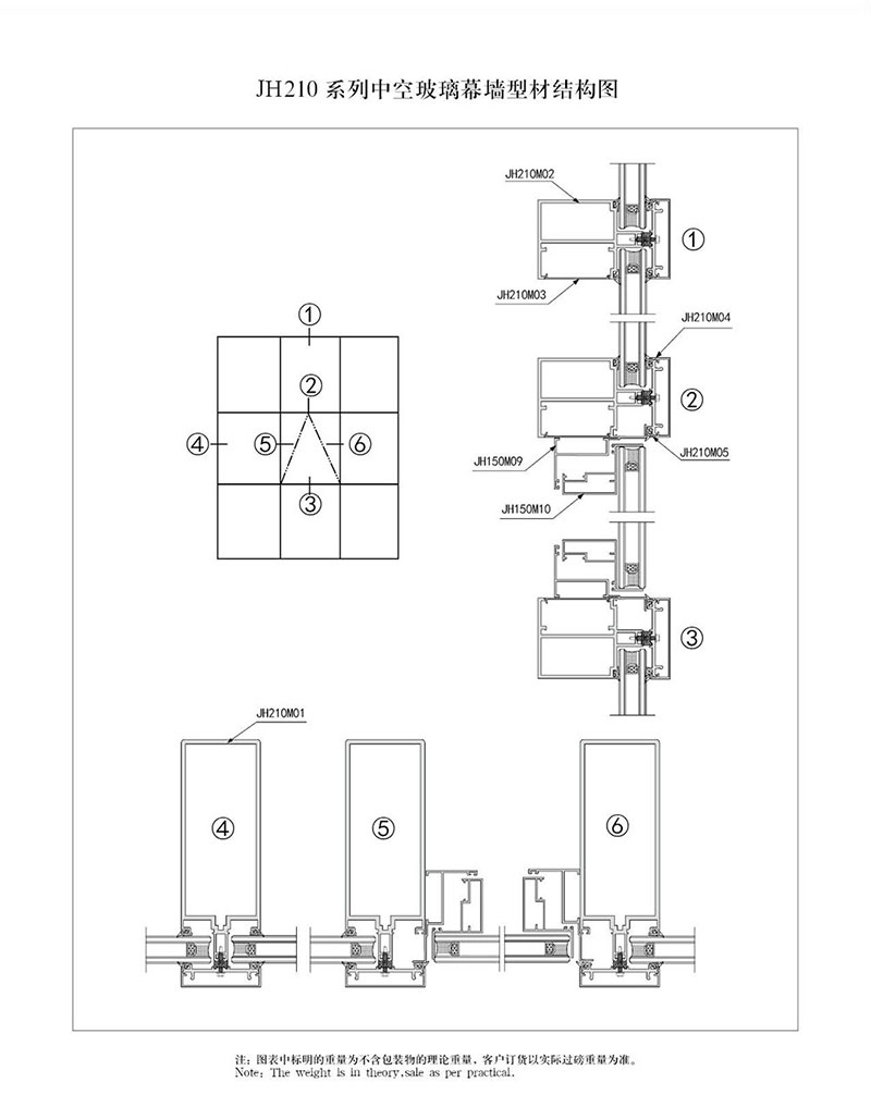 210 系列中空玻璃幕墻型材結(jié)構(gòu)圖