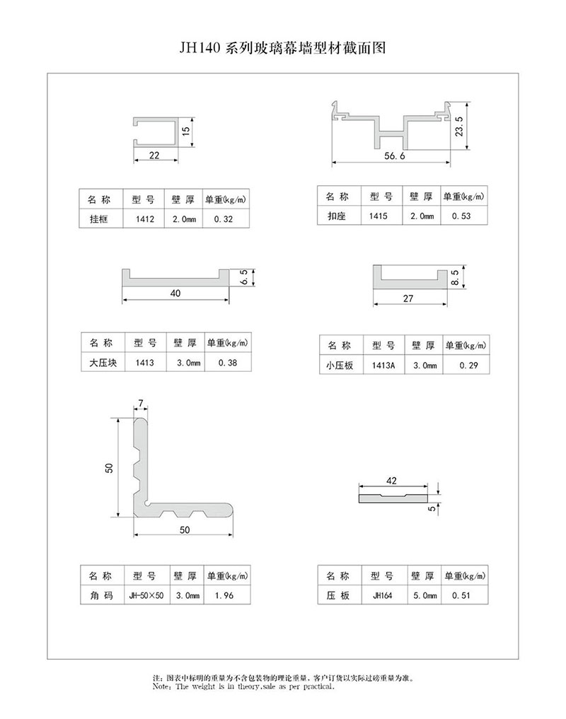 140系列玻璃幕墻型材截面圖